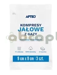 Kompresy jałowe z gazy Apteo, 9 cm x 9 cm, 3 sztuki