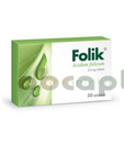 Folik to lek, który zmniejsza ryzyko powstawania wad cewy nerwowej u potomstwa. Produkt zalecany kobietom w okresie co najmniej 1 miesiąca przed spodziewanym zapłodnieniem i w pierwszych 12 tygodniach ciąży.