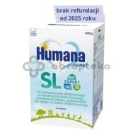 Humana Expert SL to żywność przeznaczenia medycznego - proszek do przygotowania mleka modyfikowanego dla niemowląt z nietolerancją białka mleka krowiego. Preparat nie zawiera laktozy, a jego podstawą jest białko sojowe.