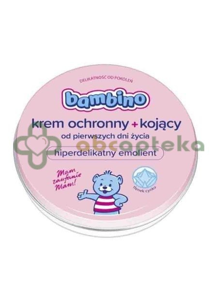- Ochronny krem Bambino to szczególnie delikatny produkt, który został stworzony z myślą o pielęgnacji wrażliwej skóry dzieci i niemowląt. Dzięki zawartości tlenku cynku i witaminy E nie tylko chroni naskórek przed szkodliwym wpływem czynników zewnętrznych.