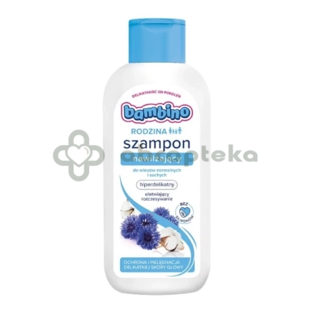 - Bambino Rodzina szampon nawilżający jest kosmetykiem dedykowanym całej rodzinie, w tym dzieciom od 3. roku życia. Szampon myje włosy i wzmacnia je oraz pielęgnuje skórę głowy. Nie zawiera silikonów, a skład wzbogacają bławatek i pantenol.