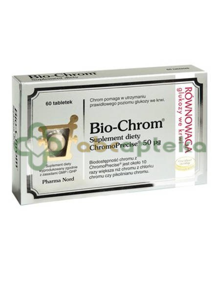 - Bio-Chrom to suplement diety zawierający niezbędny mikroelement chrom, który przyczynia się do prawidłowego metabolizmu węglowodanów, tłuszczów i białek. Wspomaga prawidłowy poziom cukru we krwi i ogranicza ochotę na słodycze.
