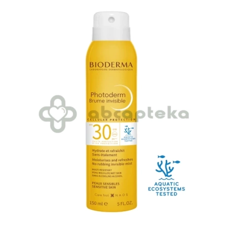 Bioderma Photoderm, Brume invisible to kosmetyk zapewniający wysoką ochronę przeciwsłoneczną (SPF 30) przy jednoczesnym odświeżeniu skóry. Produkt jest niekomedogenny, nie klei się i nie pozostawia tłustego filmu ani białych śladów. Ma on postać mgiełki rozpylanej z aerozolu i nadaje się do stosowania zarówno na suchą, jak i mokrą skórę. Kosmetyk chroni skórę przed szkodliwym działaniem promieniowania słonecznego, także dba o nawilżenie skóry i ochronę przed stresem oksydacyjnym (w składzie znajduje się przeciwutleniacz - witamina E). Zawiera substancje zapachowe.