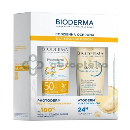 - Zestaw zawiera 2 pełnowartościowe produkty Bioderma: Atoderm olejek do kąpieli oraz Photoderm Pediatrics spray do opalania. Dzięki temu znakomicie sprawdzi się podczas podróży, zapewniając kompleksową pielęgnację - oczyszczanie i ochronę UV.