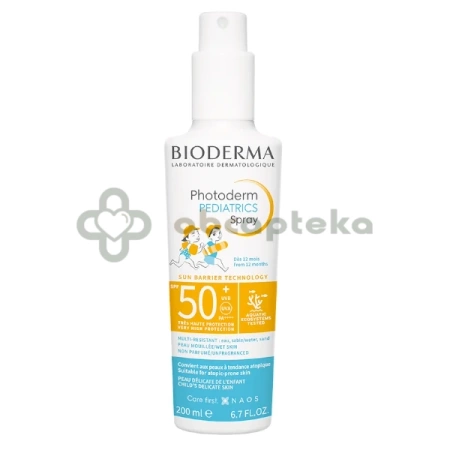 Bioderma Photoderm Pediatrics Spray SPF 50 - spray do opalania to kosmetyk zapewniający bardzo wysoką ochronę przeciwsłoneczną (SPF 50) przy jednoczesnym nawilżeniu skóry. Produkt nie klei się, nie pozostawia tłustego filmu i szybko się wchłania. Nie zawiera kompozycji zapachowych, w związku z czym nadaje się do stosowania także na skórę ze skłonnością do atopii. Odpowiedni dla dzieci po 1. roku życia.