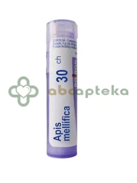 - BOIRON Apis mellifica 30 CH 4 g to lek homeopatyczny bez wskazań leczniczych o szerokim zastosowaniu terapeutycznym.