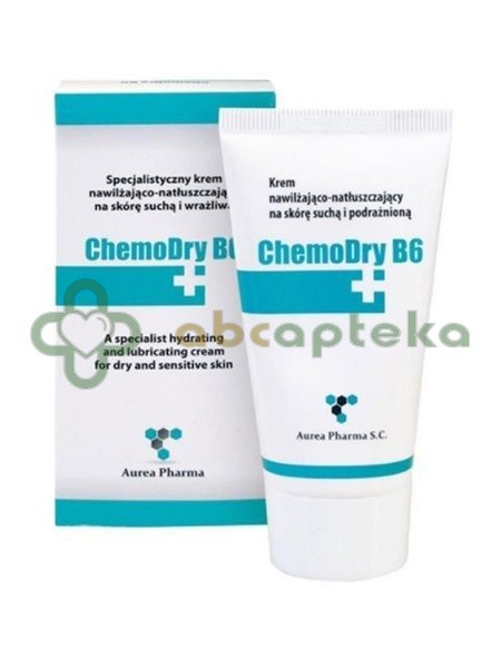 - ChemoDry B6 jest specjalistycznym kremem nawilżająco-natłuszczającym do pielęgnacji skóry suchej i wrażliwej całego ciała oraz dłoni i stóp. Zalecany jest również pacjentom przyjmującym chemioterapię.