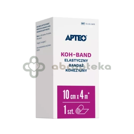 - Elastyczny bandaż kohezyjny APTEO to wyrób medyczny służący do mocowania opatrunków oraz akcesoriów medycznych, a także do unieruchamiania stawów, ścięgien i mięśni. Rozmiar: 4 m x 10 cm.