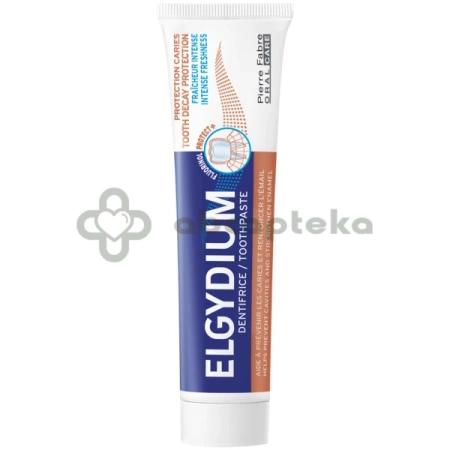 - Elgydium pasta przeciw próchnicy to kosmetyk przeznaczony do higieny jamy ustnej osób dorosłych i młodzieży od 12. roku życia, który wspomaga remineralizację zębów, ochronę przed ubytkami oraz wzmocnienie szkliwa. Pasta zawiera fluorowodorek nikometanolu.