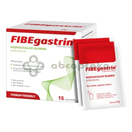 - Fibegastrin to rozpuszczalny naturalny błonnik, który pobudza pracę jelit oraz utrzymuje prawidłowy poziom cholesterolu we krwi.