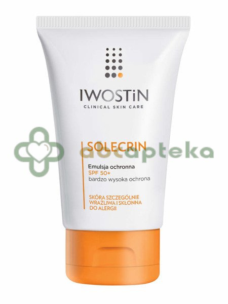 - Iwostin Solecrin Emulsja ochronna SPF50+ to preparat zapewniający bardzo wysoką ochronę przeciwsłoneczną. Zabezpiecza skórę skłonna do alergii przed szkodliwym działaniem czynników atmosferycznych.