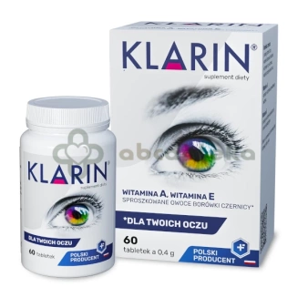 - Klarin to suplement diety zawierający w swoim składzie owoce borówki czernicy oraz witaminy A i E. Beta-karoten jest prekursorem witaminy A, odpowiadającej za prawidłowy proces widzenia.