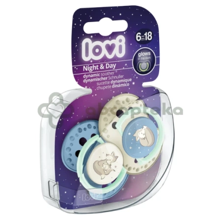 - Lovi silikonowy smoczek Night&Day został zaprojektowany specjalnie dla niemowląt w wieku od 3 miesiąca życia. Smoczek chroni odruch ssania i nie zaburza naturalnego rozwoju mowy.