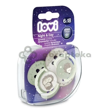 Lovi, smoczek silikonowy, dynamiczny, Night&Day Hedgehog, 6-18 miesięcy, 2 sztuki