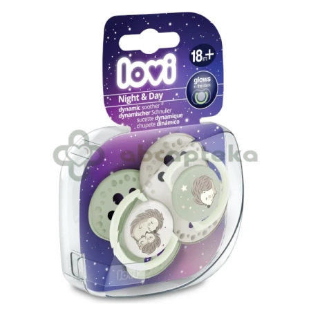 Lovi, smoczek silikonowy, dynamiczny, Night&Day Hedgehog, od 18 miesiąca, 2 sztuki