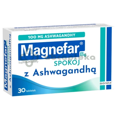 - Magnefar B6 Spokój to suplement uzupełniający dietę w magnez, witaminę B6 oraz ashawgandhę. Dobrane kompleksowo składniki preparatu wspomagają pracę układu nerwowego oraz są wsparciem w walce z odczuciem zmęczenia i znużenia.