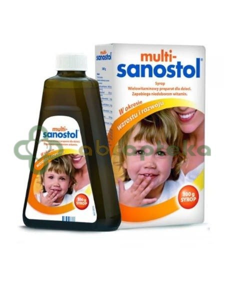 - Multi-Sanostol jest lekiem wielowitaminowym w postaci syropu. W swoim składzie zawiera witaminy rozpuszczalne w tłuszczach (witaminy A, D3, E), i w wodzie (witaminy B1, B2, B6, C, PP) oraz dodatkowo wapń.
