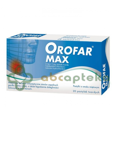 - Orofar Max to doskonały lek stosowany w miejscowym leczeniu bólu gardła i stanu zapalnego jamy ustnej. Produkt wykazuje działanie antyseptyczne, przeciwgrzybicze oraz znieczulające.
