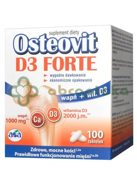 - Suplement diety Osteovit D3 Forte poprzez zawarte składniki (Witaminę D3 oraz wapń) wzmacnia tkankę kostną i mięśniową. Produkt przeznaczony dla osób dorosłych, dla kobiet w okresie menopauzy, osób 60-letnich lub starszych, osobom po unieruchomieniu.