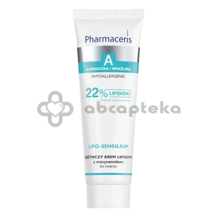 Pharmaceris A Lipo-Sensilium, odżywczy krem lipidowy z niacynamidem do krem do twarzy dedykowany skórze nadwrażliwej i alergicznej. Jest to produkt hipoalergiczny i niekomedogenny, który nie zawiera kompozycji zapachowych. Ma on lekką formułę, bogatą w lipidy. Zastosowana formuła SENSIBIOM pomaga zachować barierę hydrolipidową skóry, olej canola pomaga łagodzić podrażnienia, a masło shea pozostawia skórę miękką i odżywioną. Skład uzupełnia niacynamid, który umożliwia przeciwdziałanie przebarwieniom.