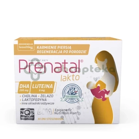- Prenatal Lakto jest suplementem diety dedykowanym kobietom po porodzie, zwłaszcza tym, które karmią piersią. Produkt wzbogaca dietę w składniki niezbędne do regeneracji mamy oraz rozwoju dziecka.