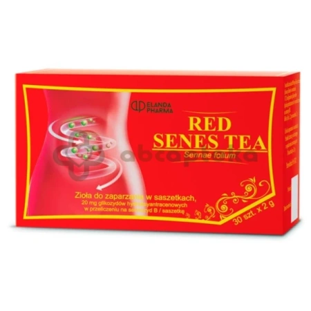 - Red Senes Tea to lek w postaci saszetek do zaparzania. Jego główny składnik to liść senesu. Produkt ma działanie przeczyszczające i stosuje się go w krótkotrwałym leczeniu zaparć.