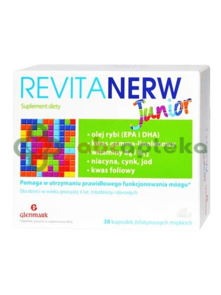 - Revitanerw Junior to suplement diety dopasowany do potrzeb dzieci (powyżej 3 lat) i młodzieży. Uzupełnia codzienną dietę w składniki odżywcze mające kluczowe znaczenie dla prawidłowego funkcjonowania: sprawności umysłowej, mózgu, układu nerwowego.