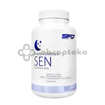 - SFD Dobra Formuła Sen to suplement diety, który wspomaga zasypianie oraz ułatwia wyciszenie organizmu w sytuacjach napięcia nerwowego.