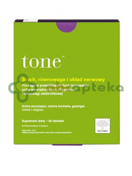 - Tone to złożona kompozycja wyciągów ziołowych wzbogacona witaminami i minerałami, która wspomaga utrzymanie dobrego słuchu.